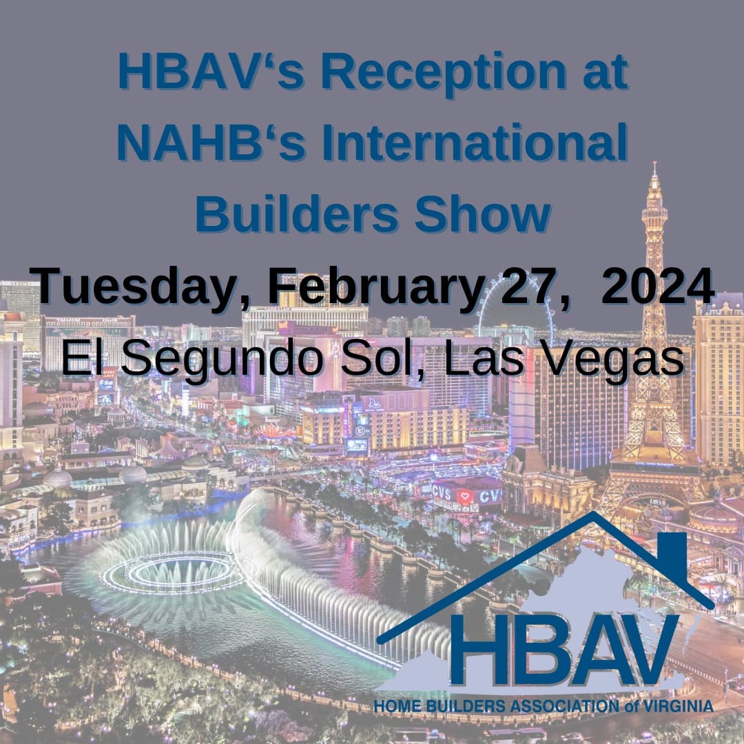 Join us during NAHB's International Builders Show in Las Vegas for a reception with all HBAV members and guests. HBAV will host an open reception at El Segundo Sol in Las Vegas, NV on Tuesday, February 27th from 5:30 - 7:00 pm. We can't wait to see you in Vegas!